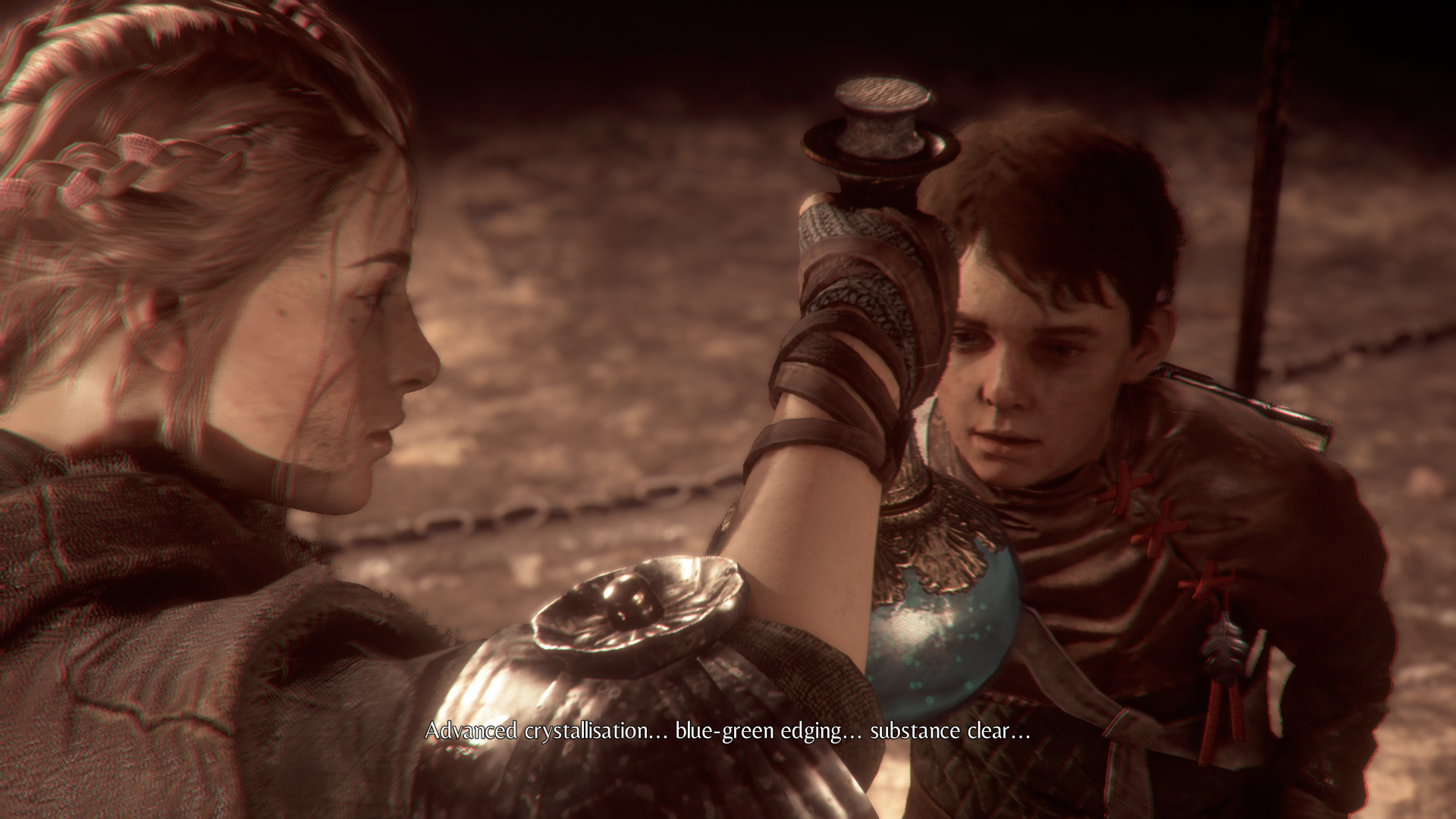 Amicia wraz z ojcem wracają czym prędzej do posiadłości, gdzie przez moment możemy pocieszyć się spokojem i spędzić chwilę z młodszym bratem Hugo. Nasi bohaterowie nie znają się za dobrze, bowiem Hugo cierpi na dziwną chorobę i matka, alchemiczka, spędza dnie i noce na szukaniu lekarstwa. Niestety błoga chwila dobiega końca, bowiem do posiadłości przybywa inkwizycja i domaga się wydania chłopca.