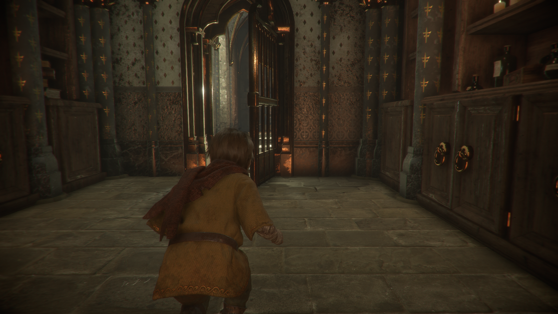 Dochodzi do potyczki między inkwizycją a mieszkańcami naszej posiadłości. Nasz ojciec ginie już na samym początku (bowiem od tego zaczyna się cała ta masakra). Matka naszych bohaterów zamyka ich w pokoju Hugo, a sama biegnie robić dywersję. Amicia wraz ze swoim bratem powoli i ukradkiem wymykają się do kuchni. Tam spotykają się ze swoją rodzicielką, po tym jak ogłusza ona najemnika, który nas nakrył.